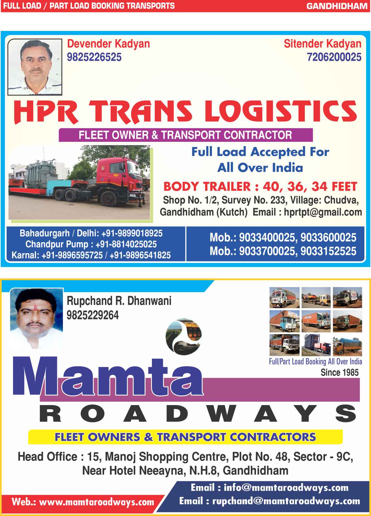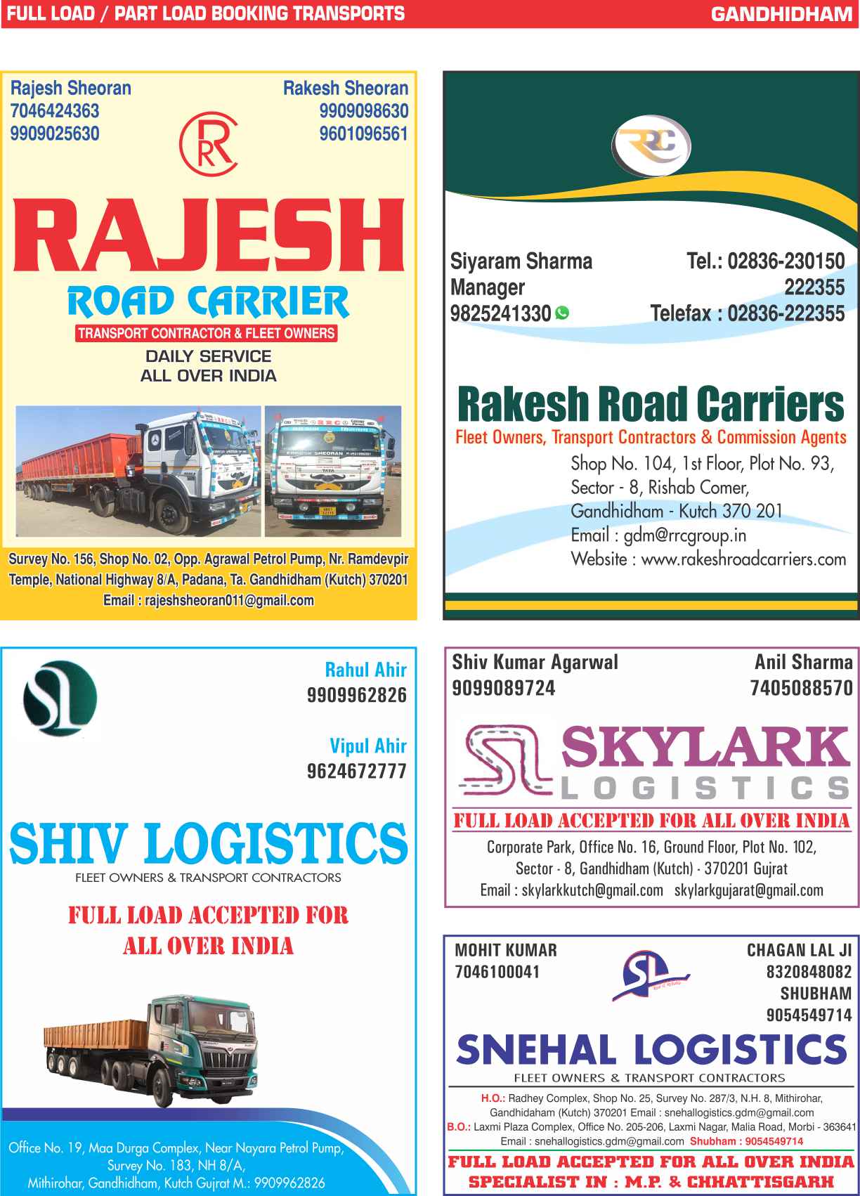 Full Load & Part Load & Parcel Booking