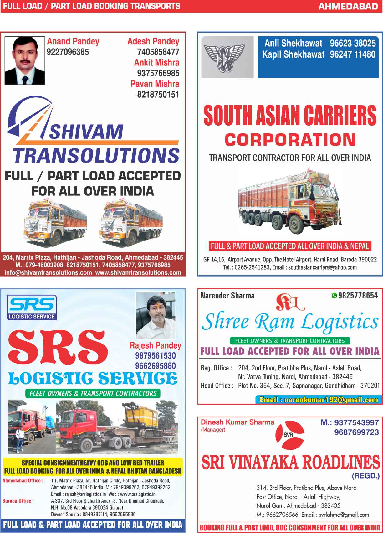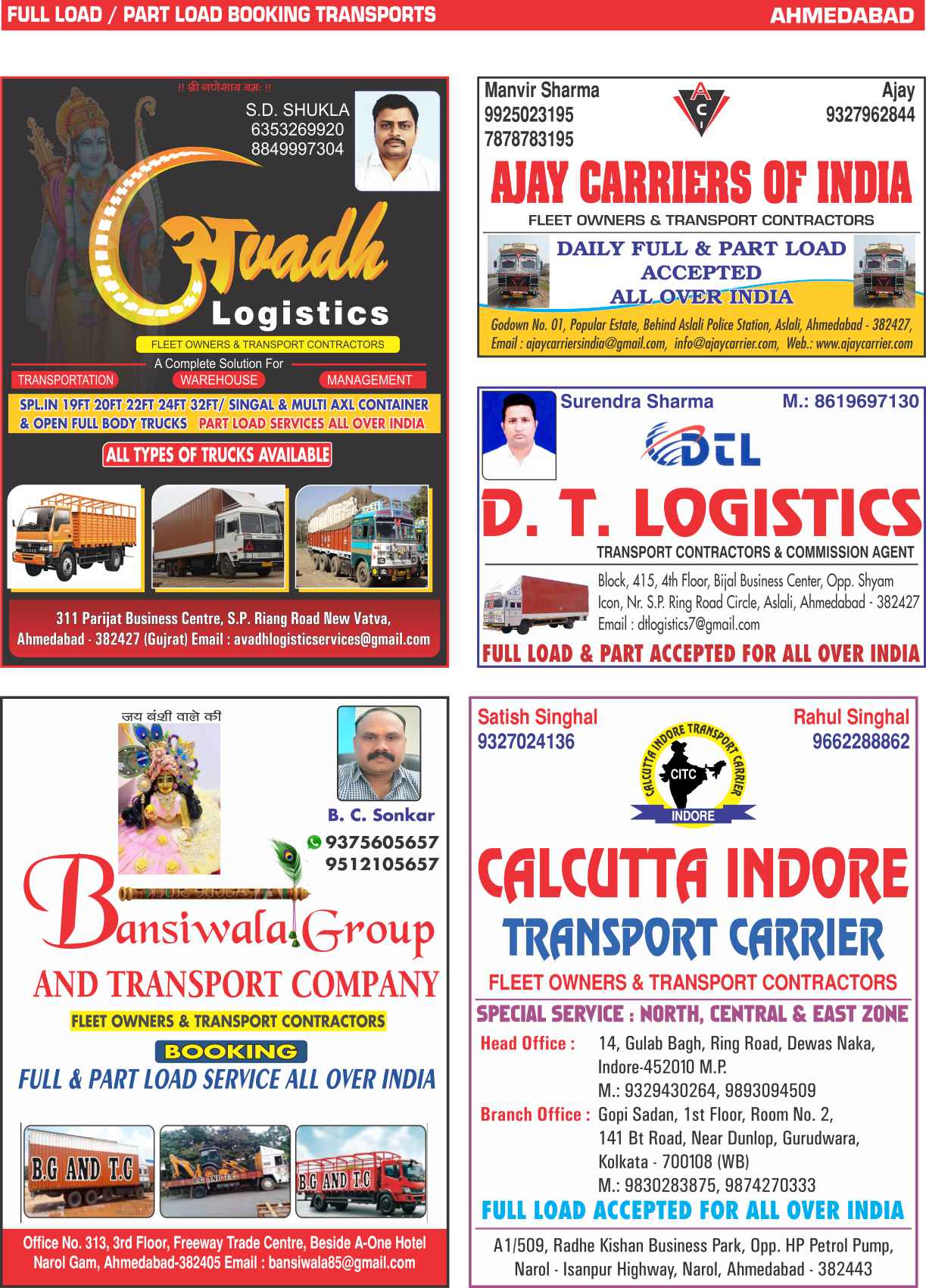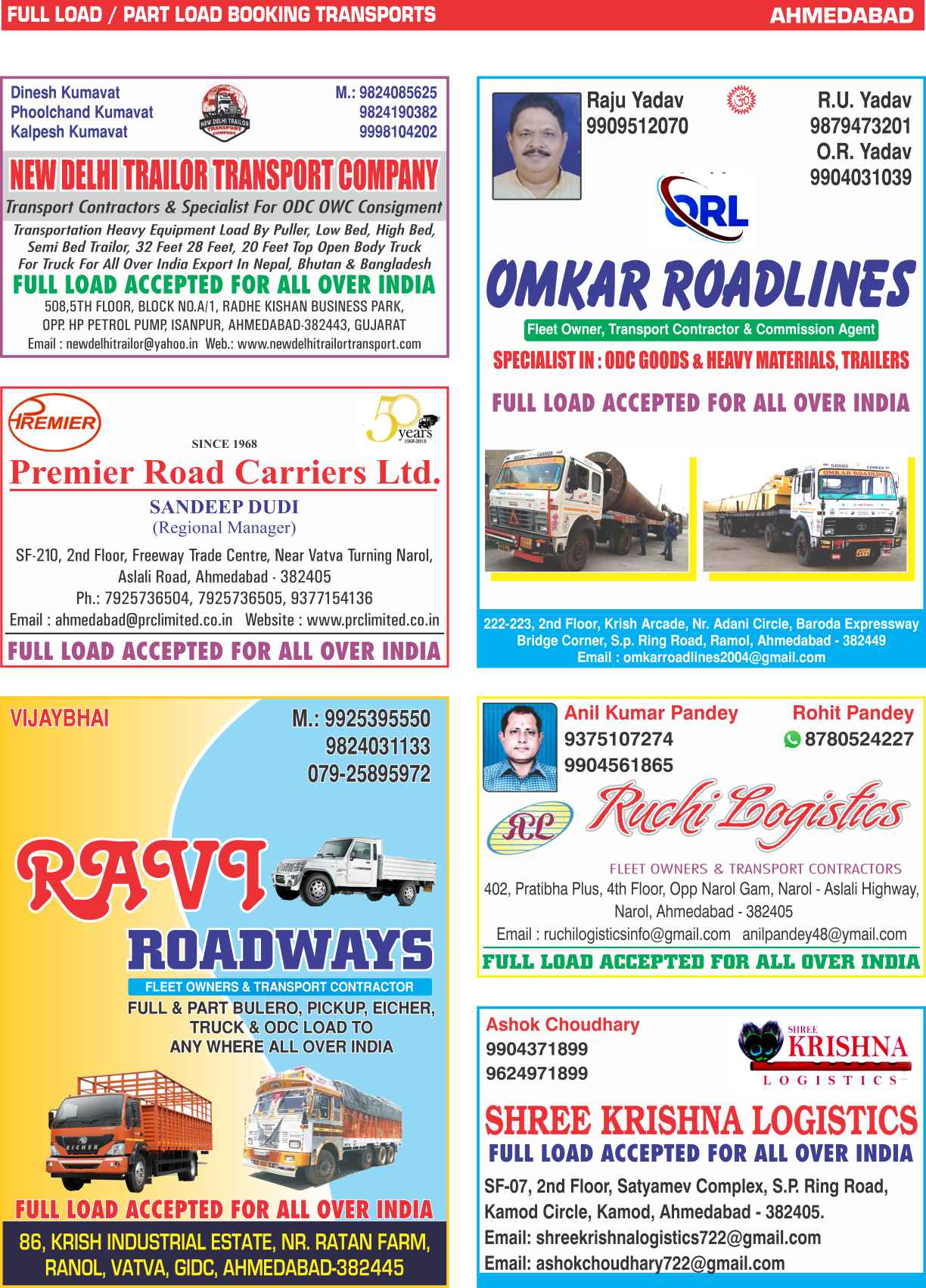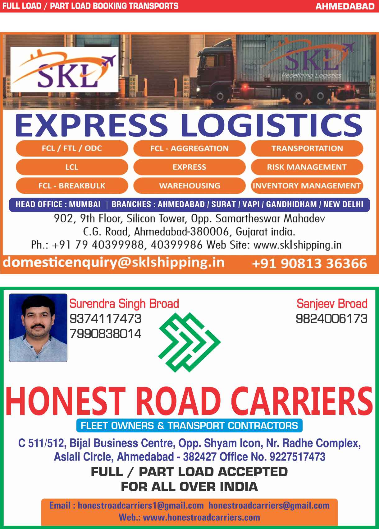 Full Load / Part Load Ahmedabad