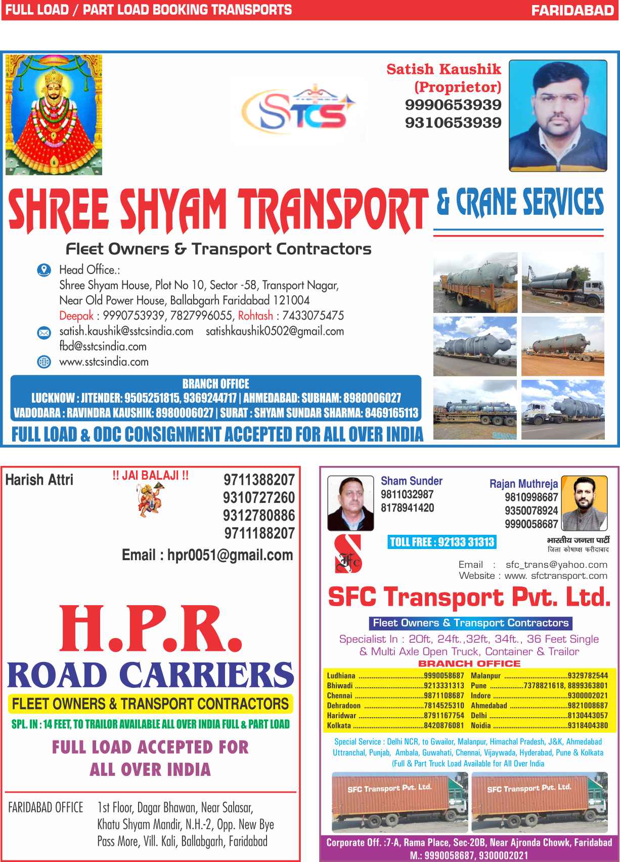 • Full Load & Part Load Faridabad