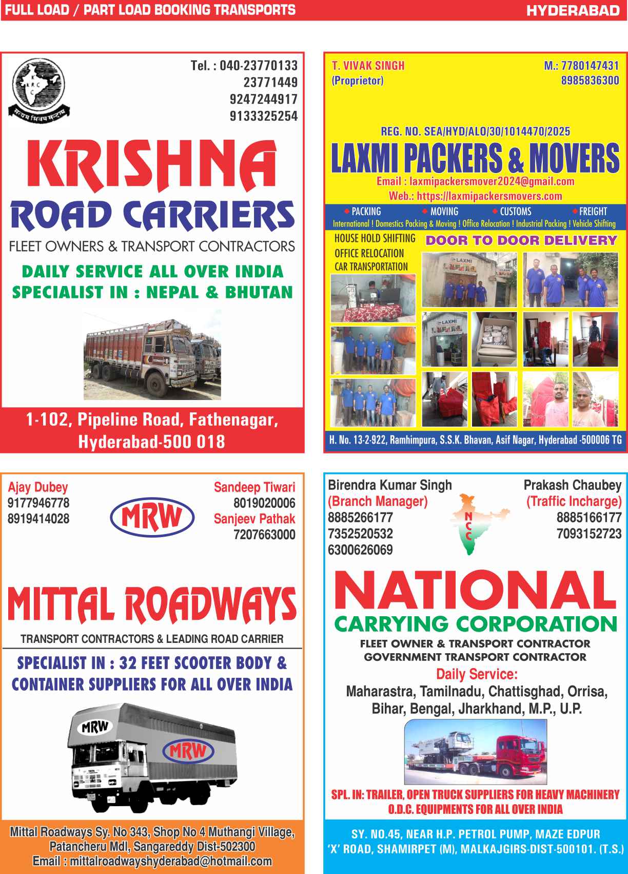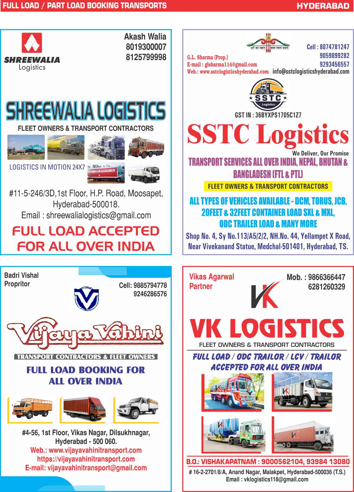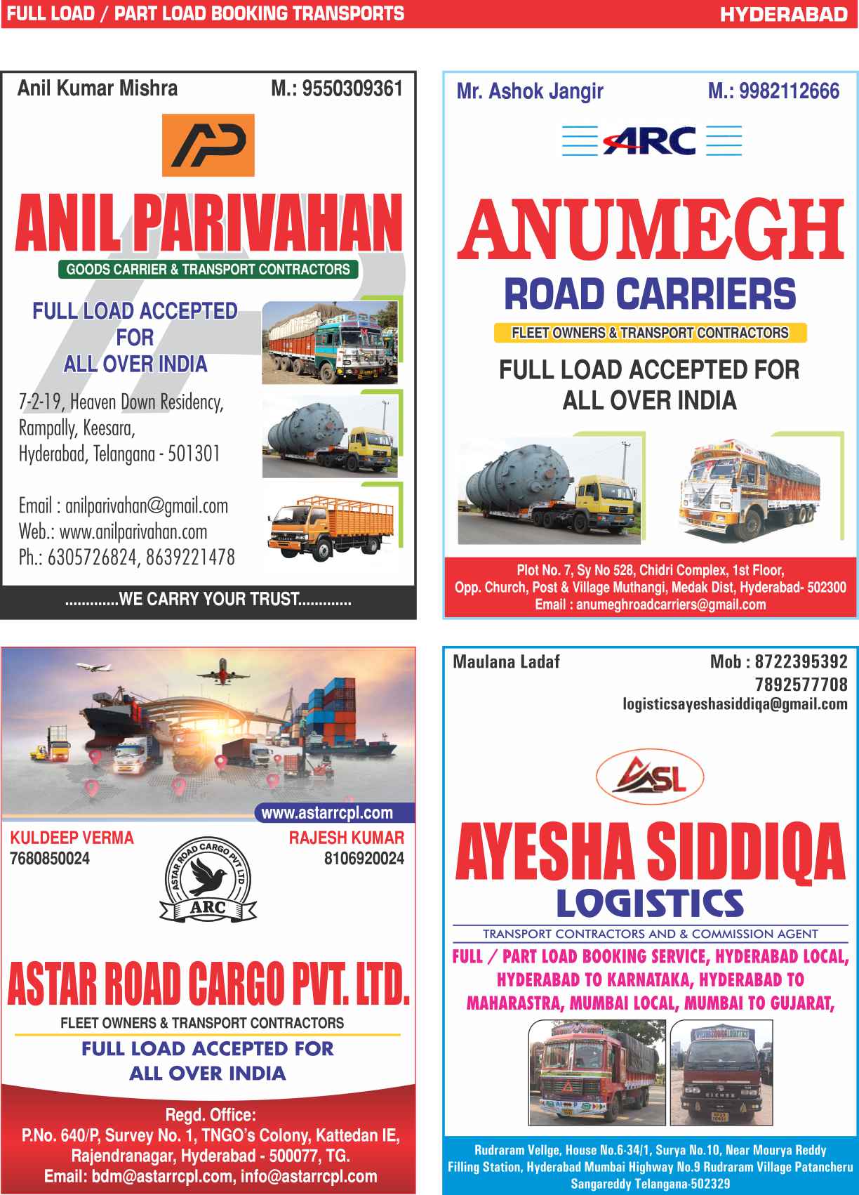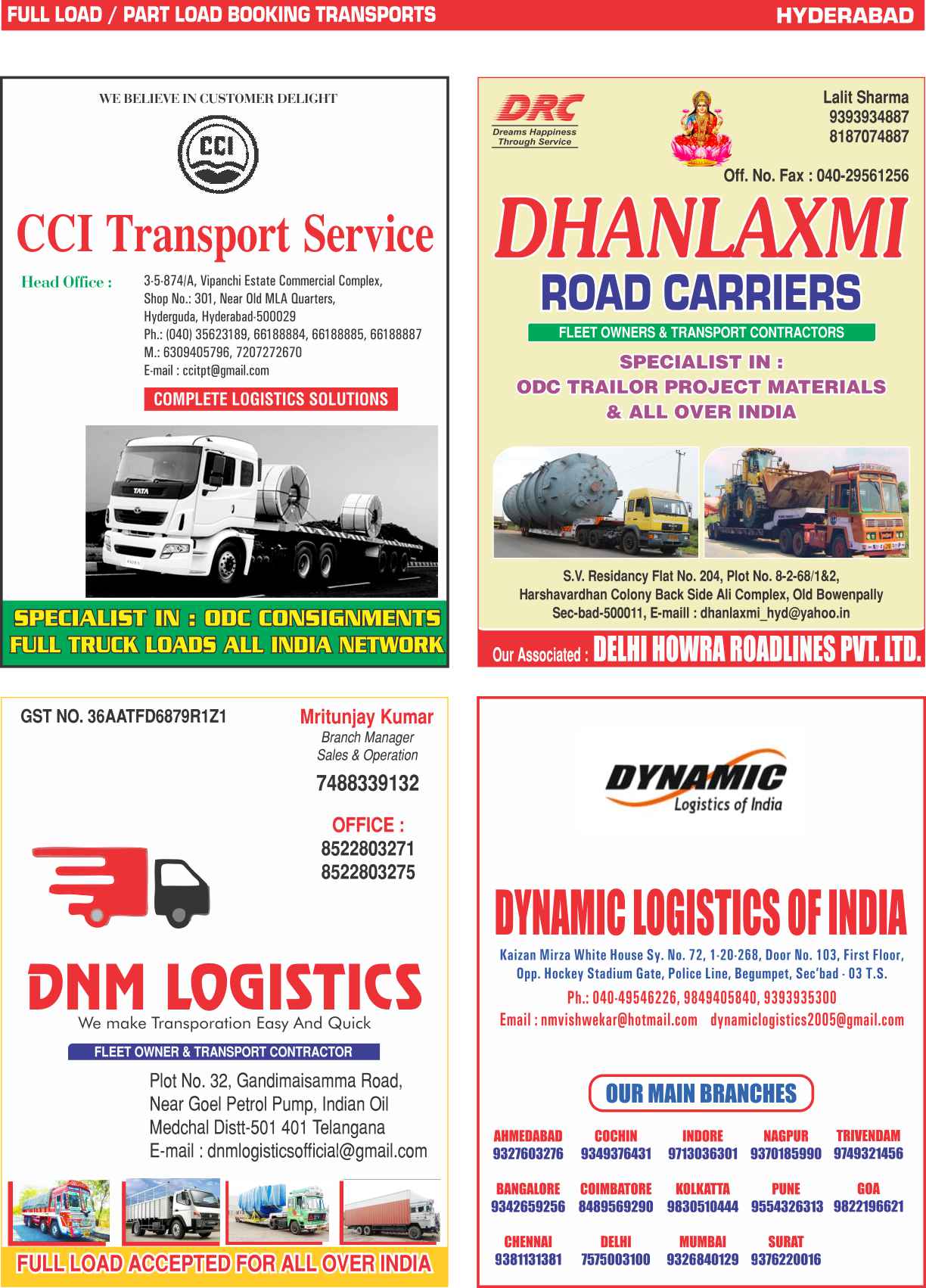 Full Load & Part Load Hyderabad