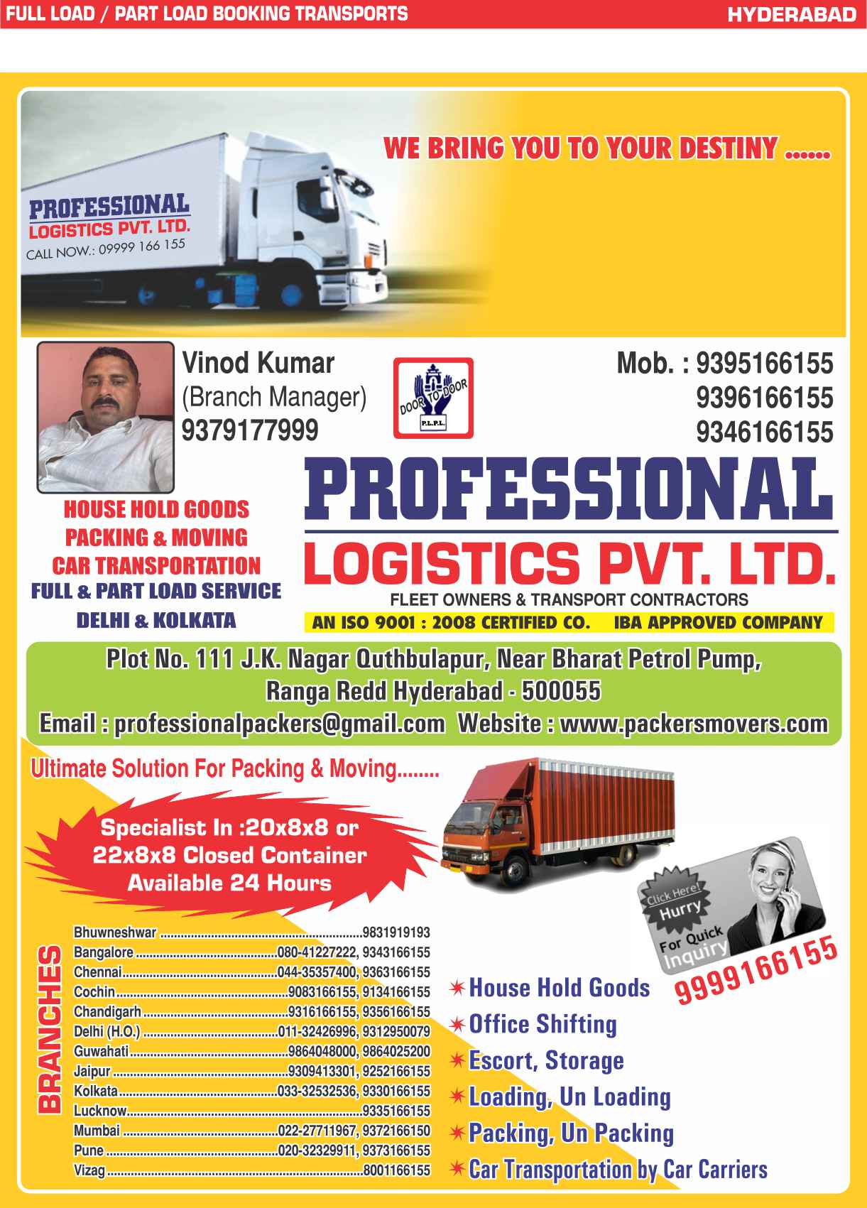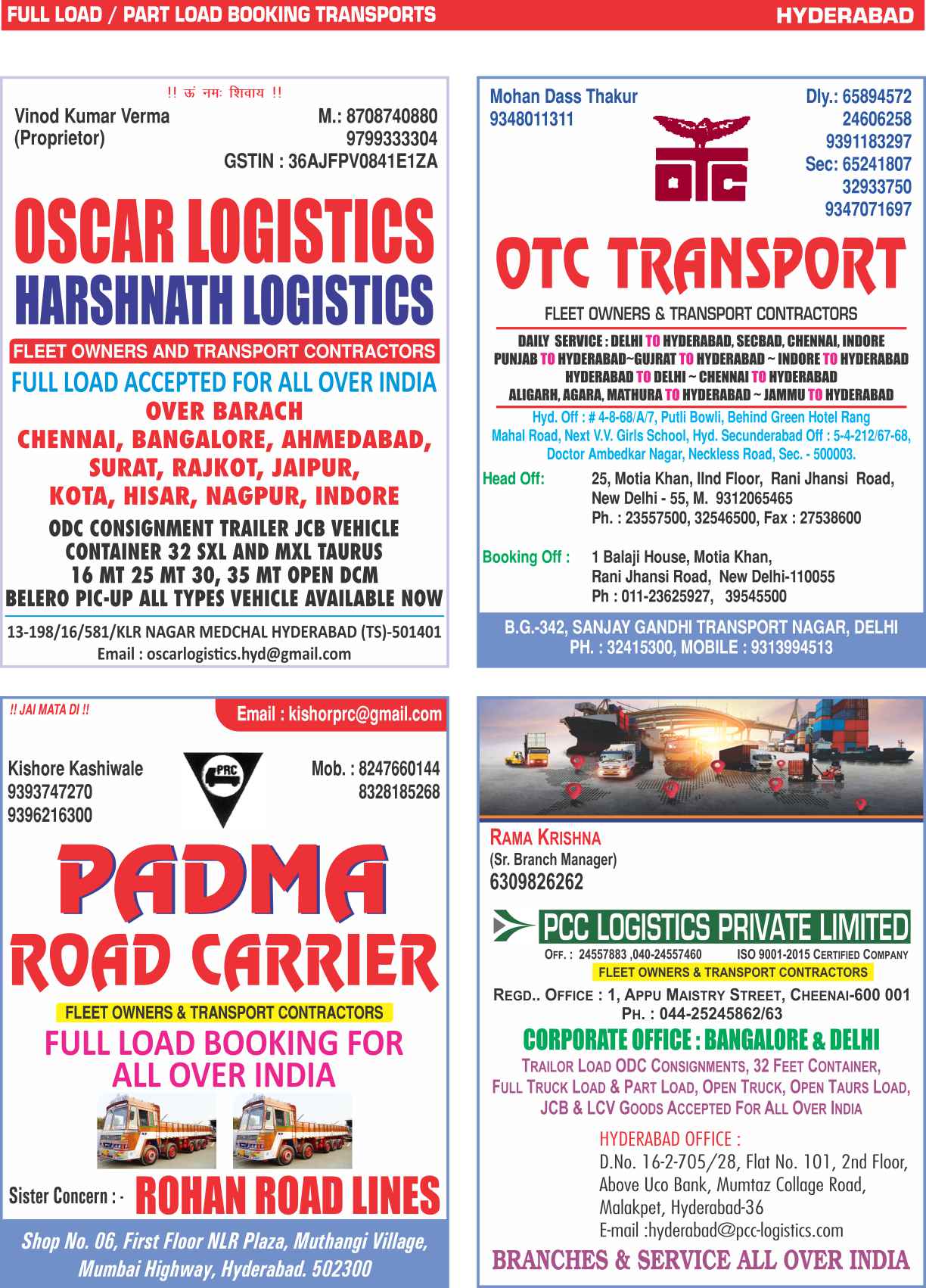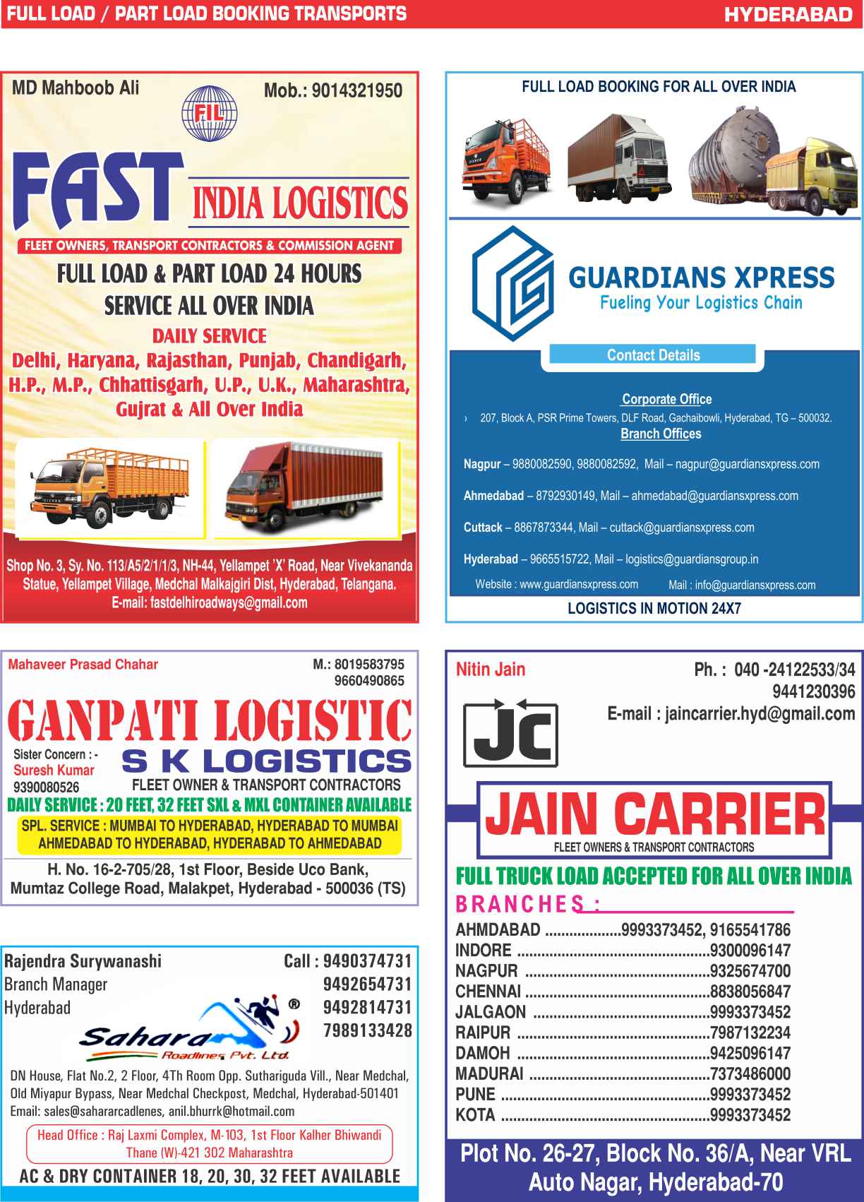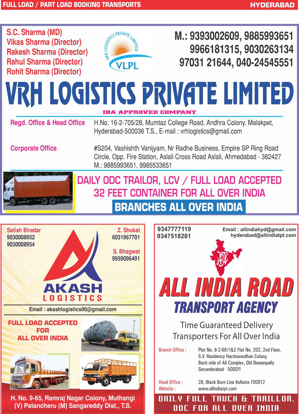 Full Load & Part Load Hyderabad