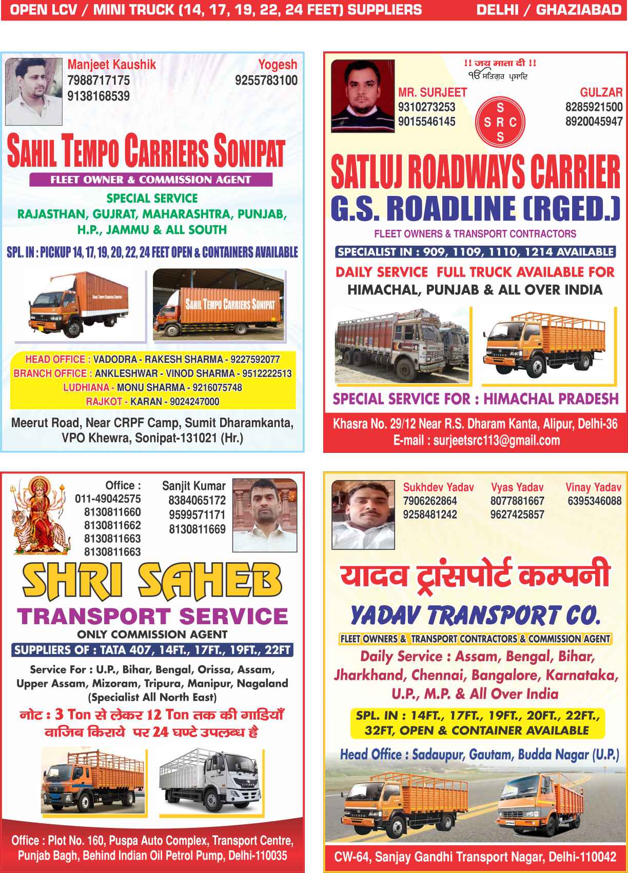 • LCV & Tempo Suppliers Delhi NCR